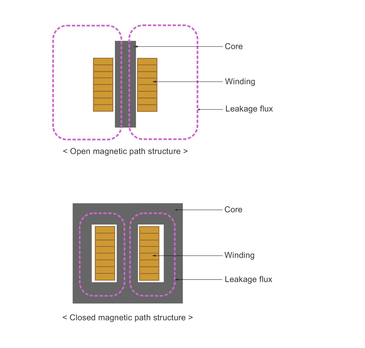 이는 자기 경로가 내부에 패쇄되어 있어 누설 인덕턴스가 적고, 주변 장치에 미치는 영향을 줄일 수 있습니다.