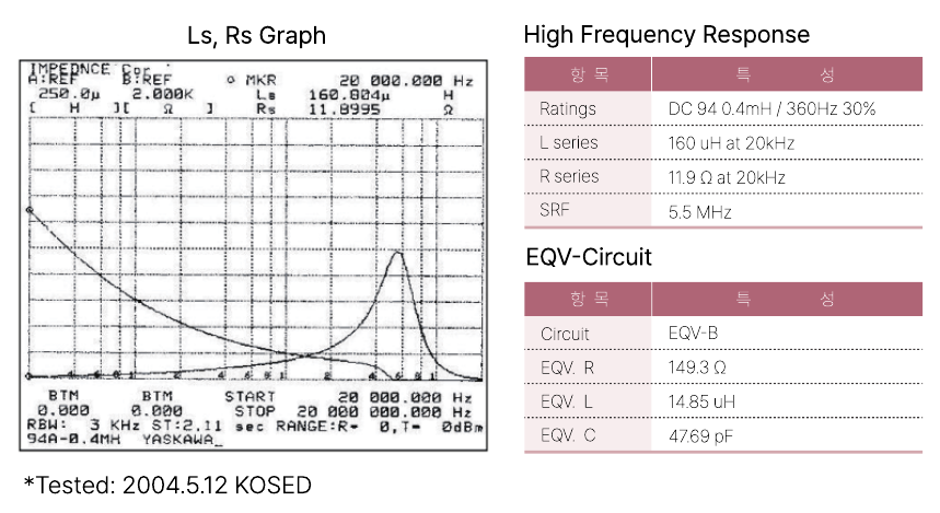일본 "Y**" 사의 인버터에 내장된 DC 리액터의 주파수 특성과 EQV-Circuit 특성을