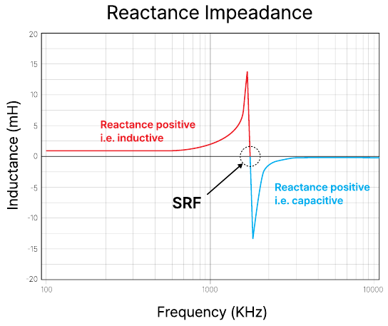 이 범위에서는 주파수가 증가함에 따라 인덕턴스 값이 증가하여 SRF에서 최대치에 도달합니다.