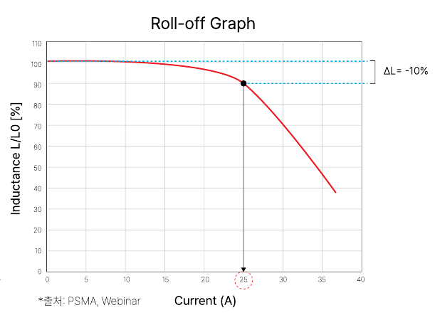 이 현상을 'Roll-off'라고 부르며, 이는 DC 리액터의 직류 중첩 특성을